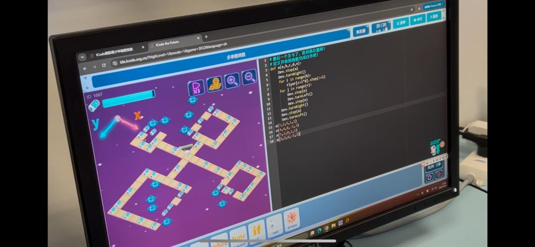 这是一款名叫“ICode”的编程学习软件,你需要控制机器人翻越各种障碍收集能量,但和其他游戏不同的是,你没有上下左右按钮,每一步都需要编写代码。