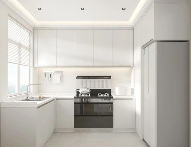 用同色门片、无把手、按压开门,柜体和墙融为一体。