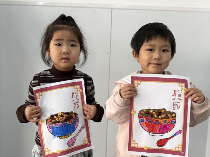 精心熬制的腊八粥香气四溢,孩子们捧着温热的小碗,小口品尝着软糯香甜的粥品。一碗热粥、一罐蒜、一幅手工,让小班幼儿在听、做、品的过程中,不仅了解了腊八习俗,更体会到了劳动的乐趣与分享的温暖。
